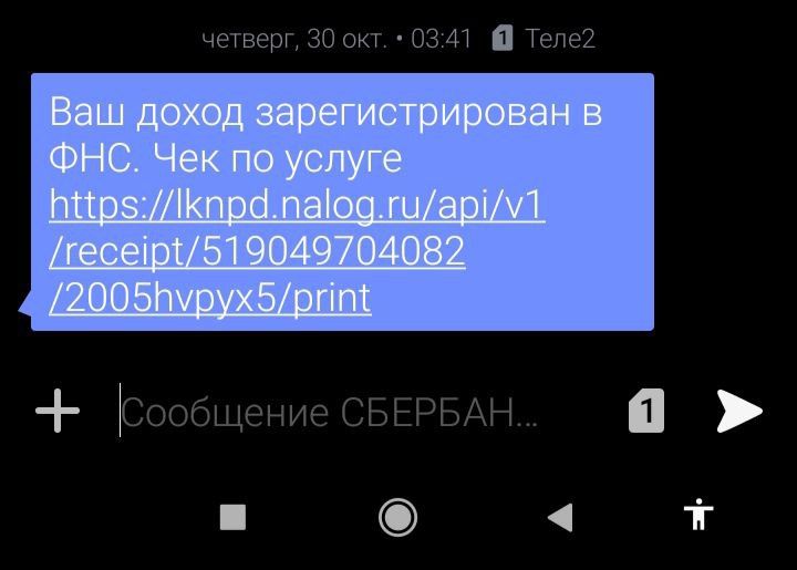 Забавная ситуация из личного под названием "Налоговая не дремлет или я зарабатываю даже когда сплю". Сегодня ночью меня разбудило вот такое СМС: "Ваш доход зарегистрирован в ФНС. Чек по услуге ....." Сказать, что я была обескуражена - это не сказать ничего.